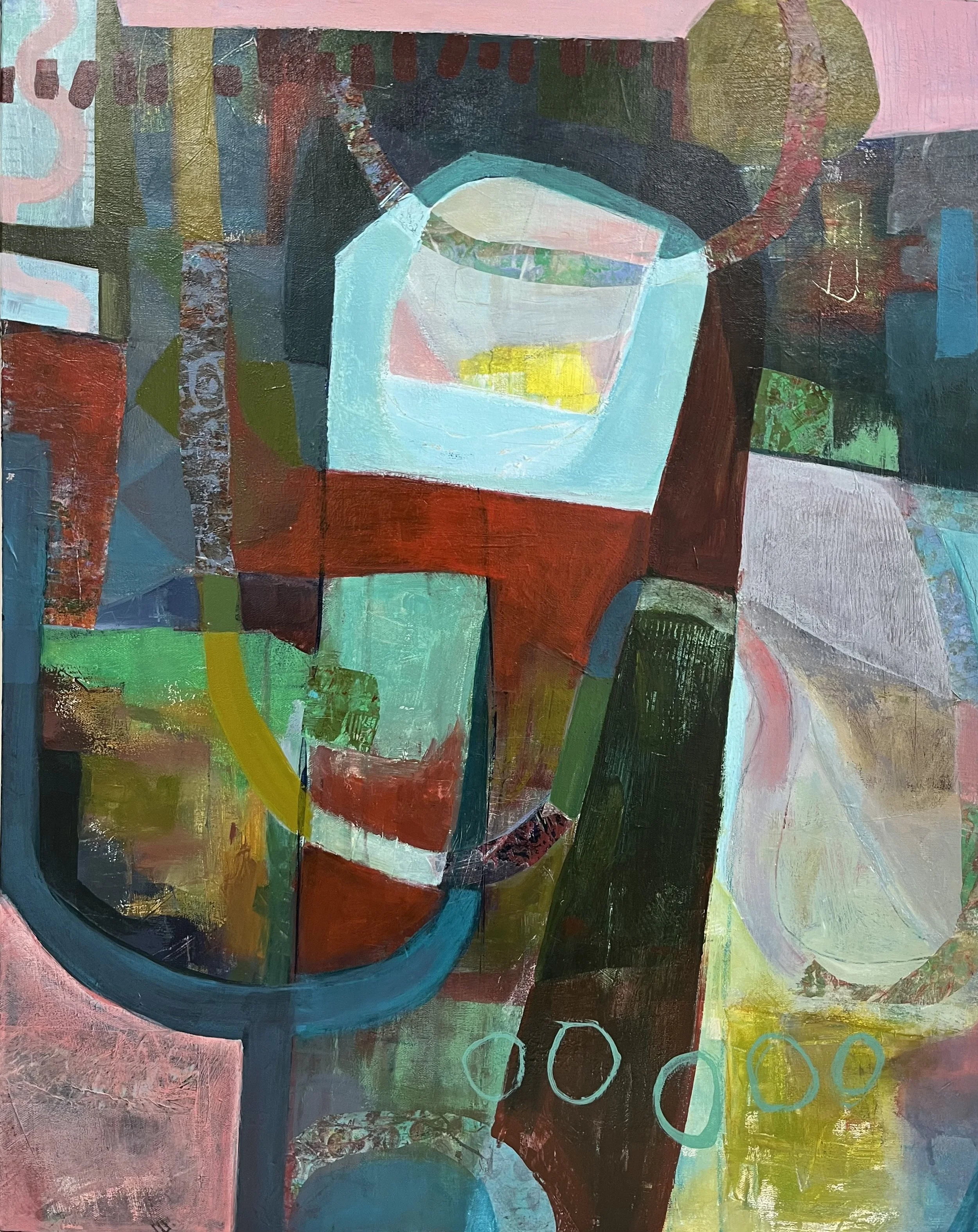 Amy Sabrin's work reflects her attraction to joyous colors, bold composition, and glowing light. Her abstract mixed media compositions are frequently inspired by landscapes to which she has a strong attachment, or by intense personal experiences. She works in acrylics, watercolor and collage, using collage papers she prints herself.