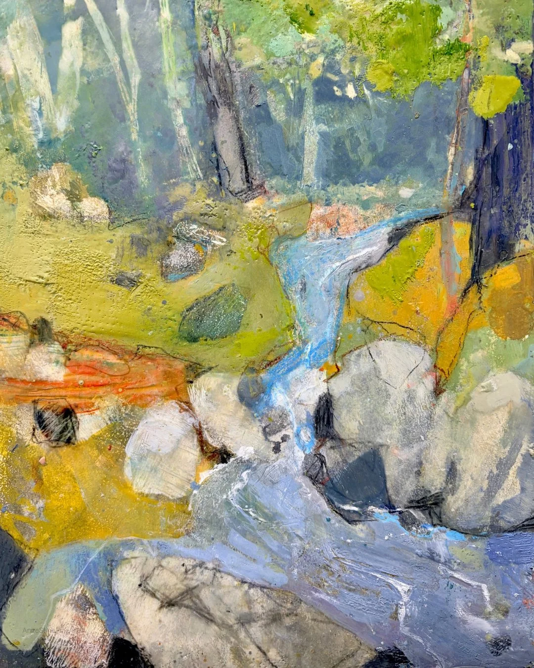 Water's Path, encaustic mixed media, 14” x 11”