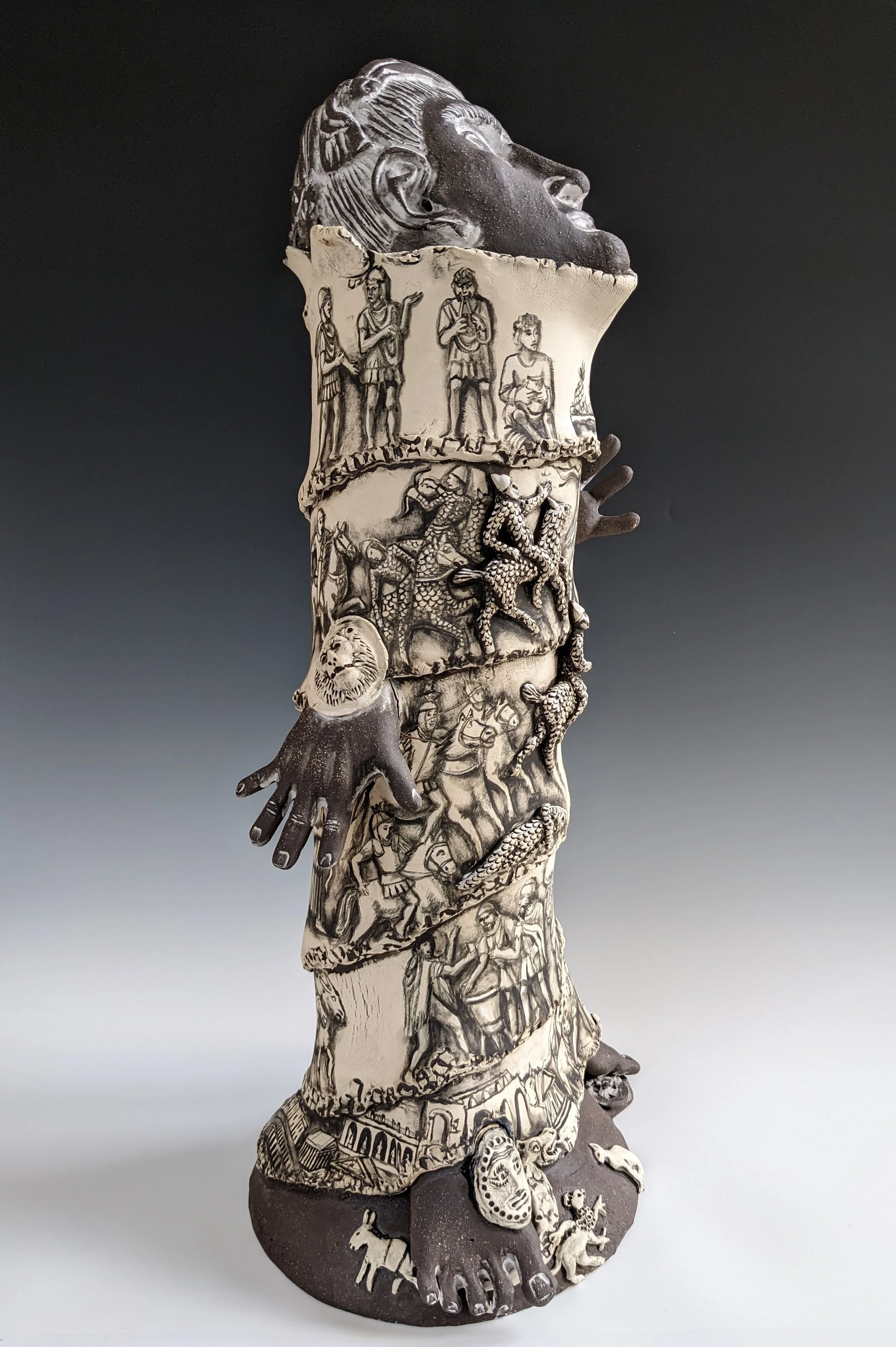 During the last 16 years, she has practiced sculptural ceramics; her clay works are handmade of white or brown stoneware utilizing both color glazes and under-glazes. Elena’s works often combine the human face or figure with architectural elements, musical instruments, and mythological or real animals. A lot of her inspiration comes from various Eurasian mythological traditions such as the art of Medieval Europe, Ancient Greece and Rome, the Middle East, India, and China. Her works revolve around concepts such as a series of trip memoirs, science, music, chess, theater, and more.