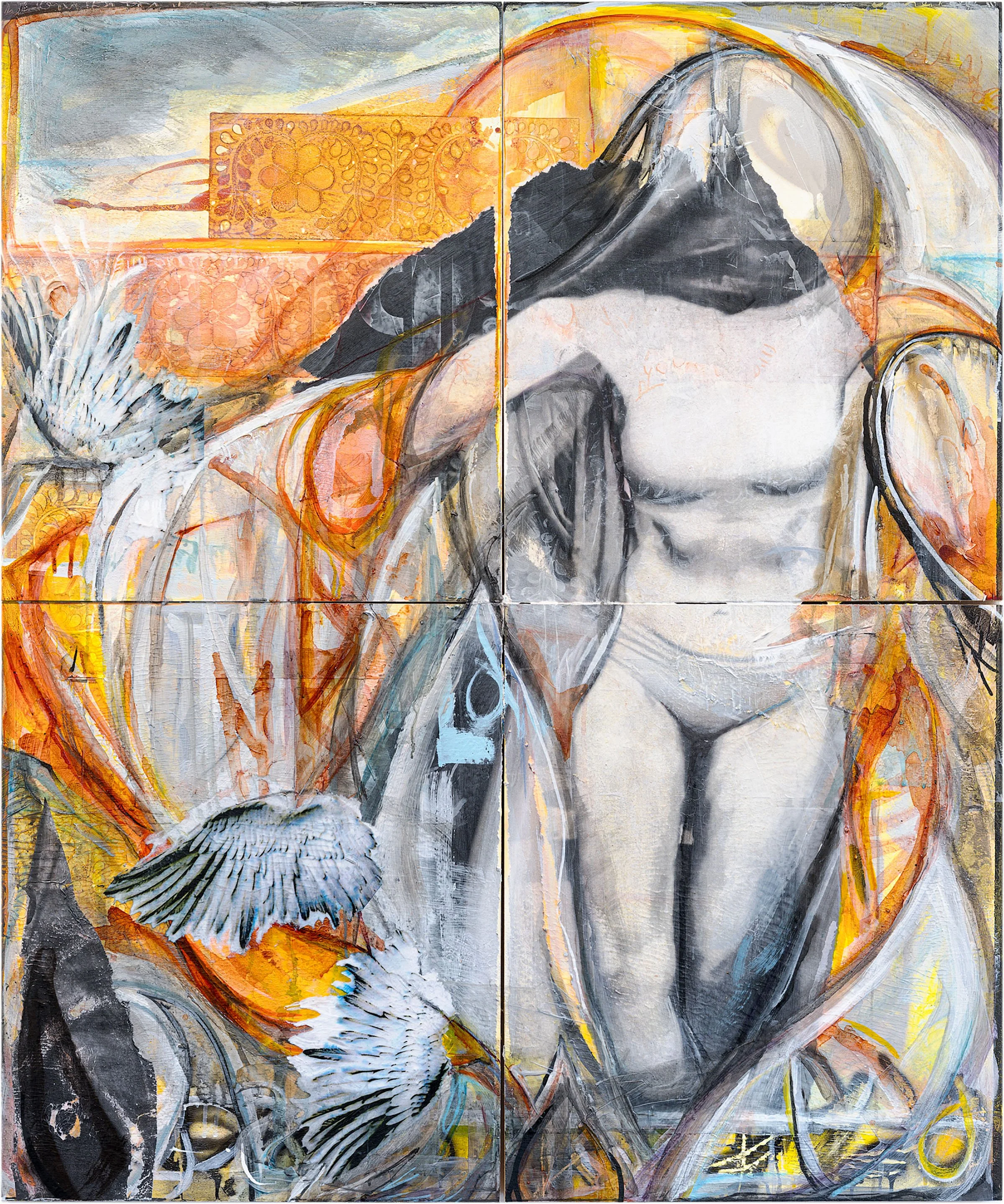 S. Manya Stoumen-Tolino is a Maryland-based artist known for gestural, mixed-media paintings that exist between representation and abstraction. Her work often weaves together human, avian, and natural forms to explore transformation, ambiguity, and the persistence of memory