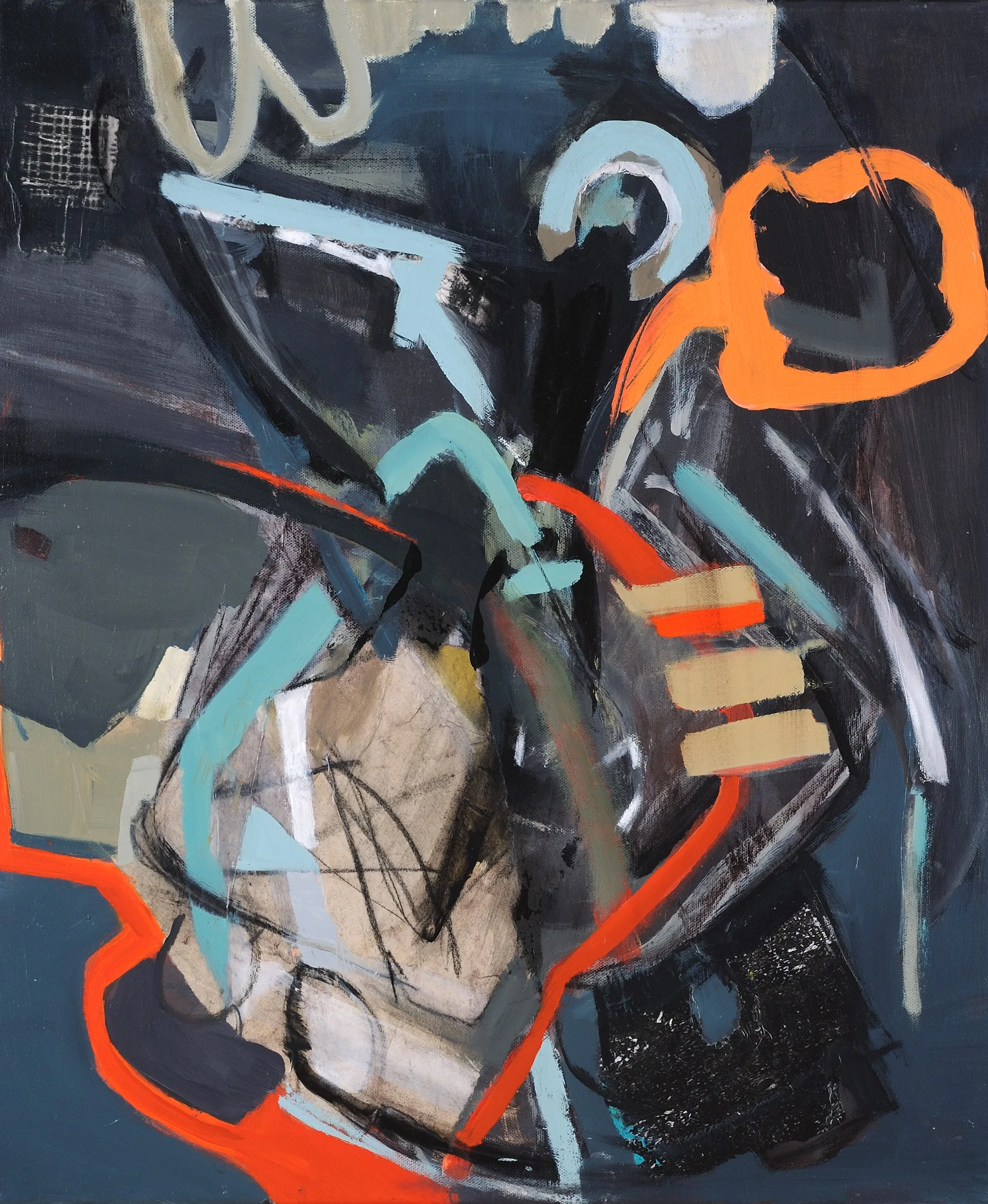 Marthe McGrath is drawn to bright colors and bold compositions in her abstract works. She works in acrylic, inks, oil pastels, charcoal, graphite, cold wax and other mixed media materials. She will start with an idea, image, or sketch, sometimes even finding her inspiration for a series to be purely color-driven. Her process is not static; she describes it as intuitive and joyful, constantly experimenting and learning. Although having a classical background, she will paint with whatever she gets her hands on–brushes, knives, her hands, chopsticks, etc. resulting in exuberant artworks.